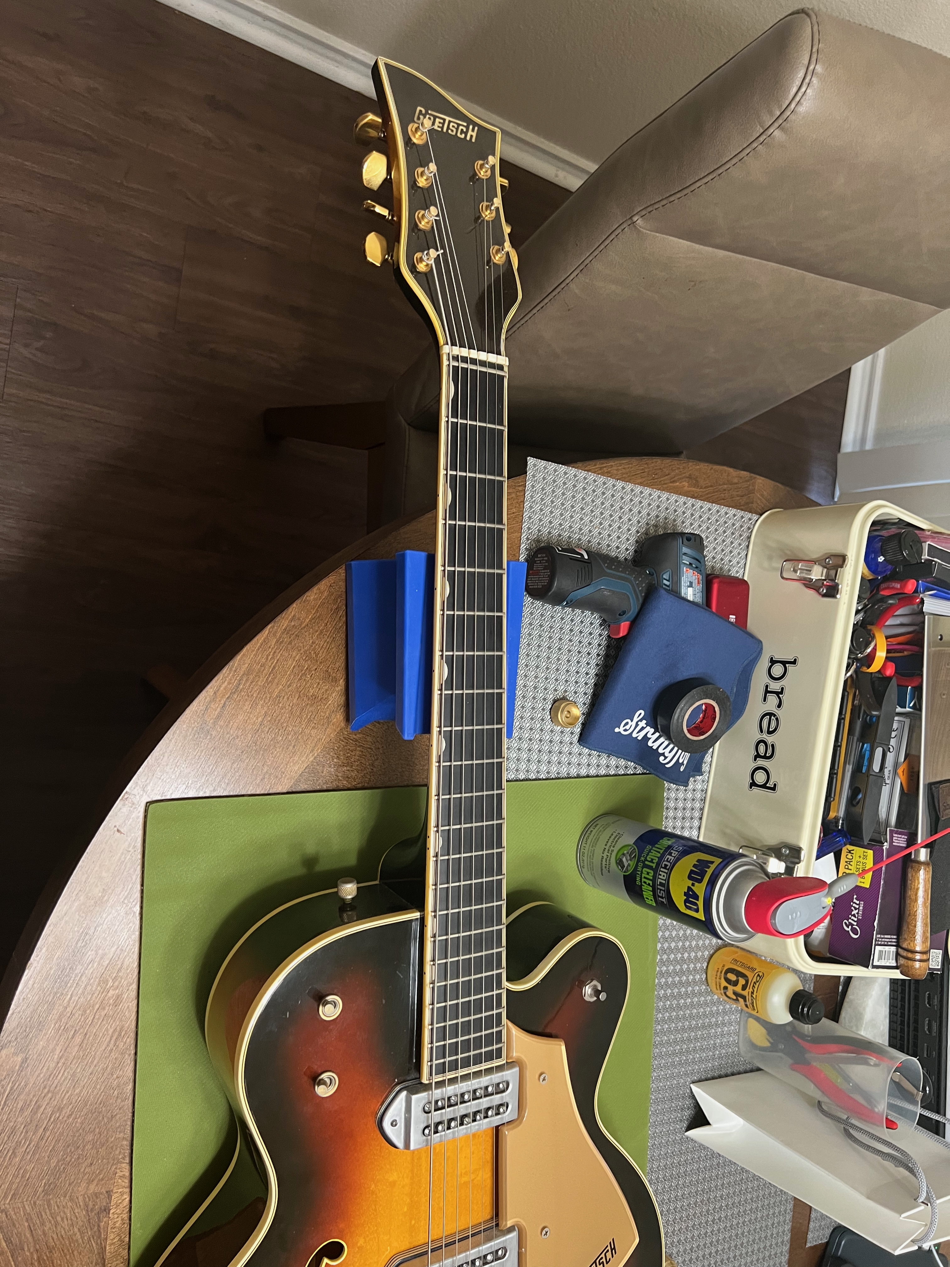 These aren’t the only lower range guitars I have. As I mentioned, I have some pretty amazing seven strings. Here’s my beloved Gretsch 7, for example.